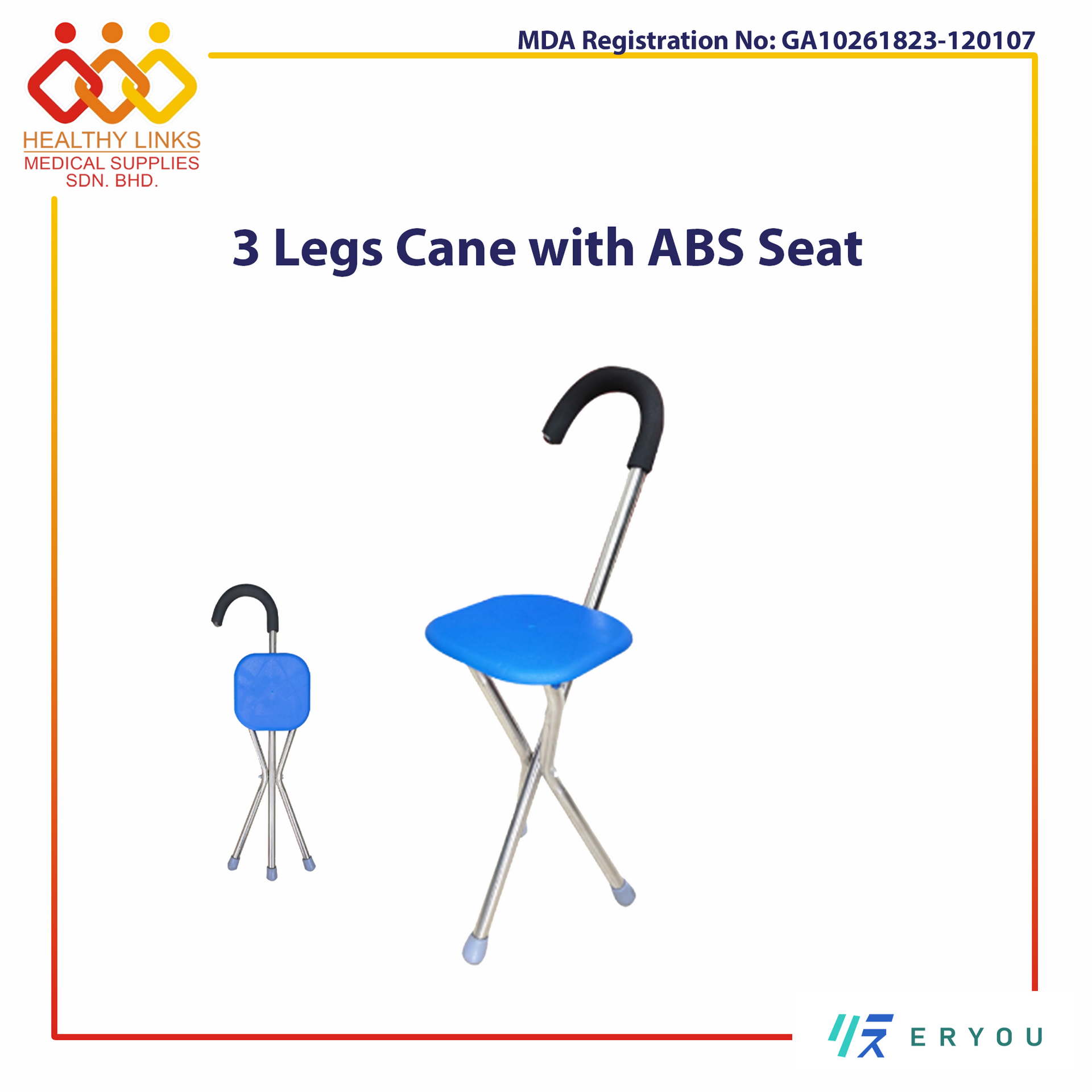 Portable Stainless Steel 3 Legs Folding Cane with ABS Seat (SYIV-CRS13)