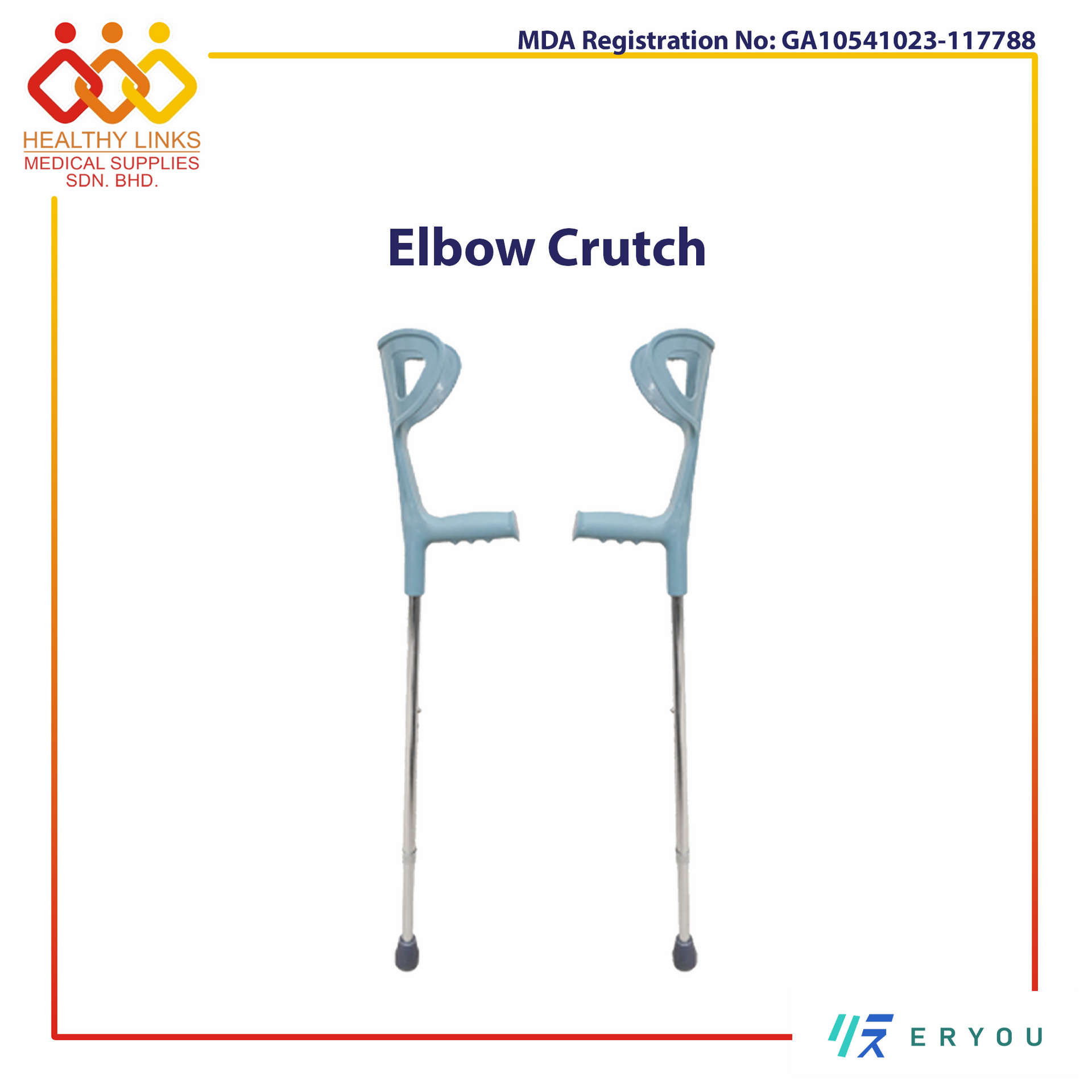 Hospital Aluminium Elbow Crutch - Height Adjustable Forearm Cane Support (KH-WA01)