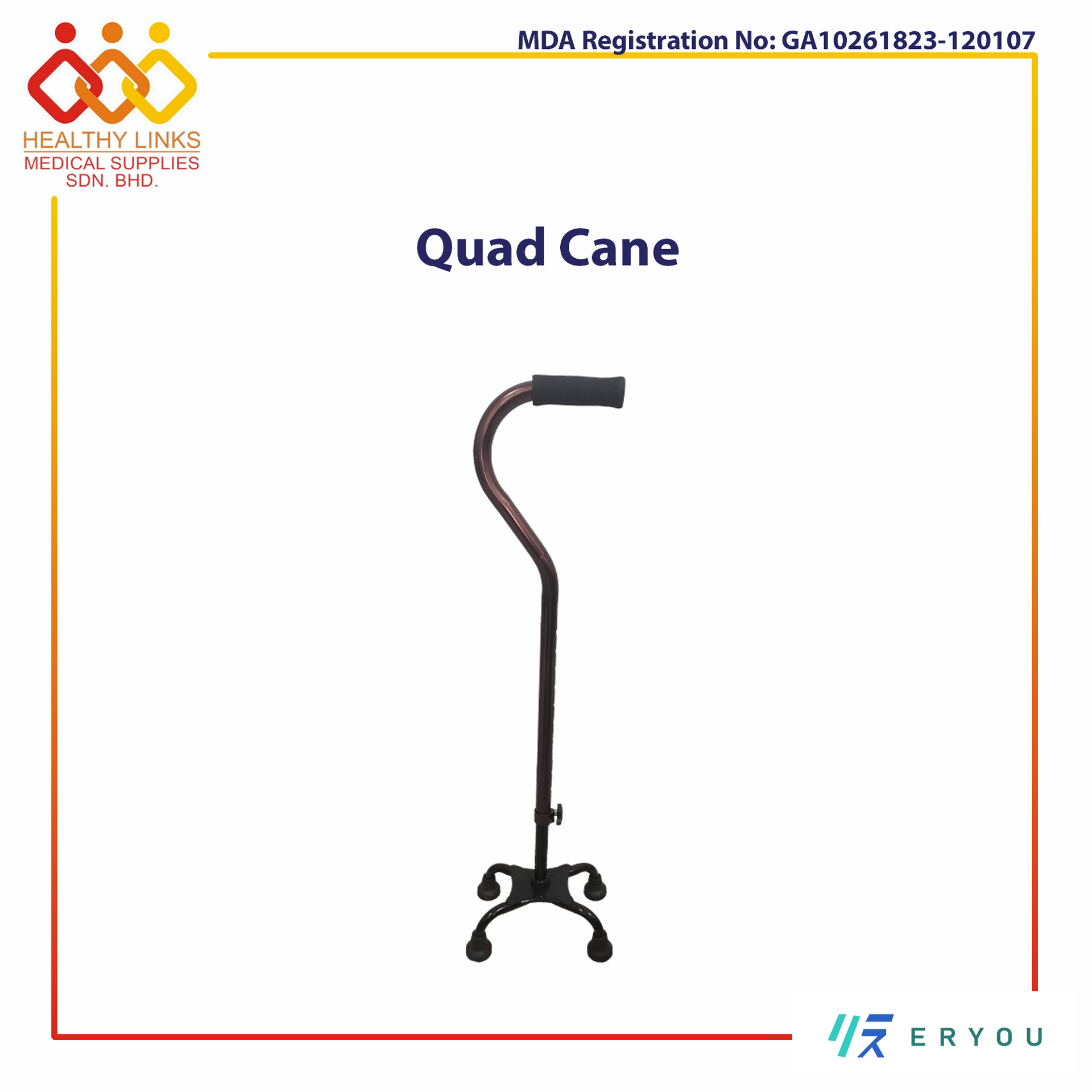 Aluminium Lightweight Height Adjustable Quad Cane with Small Base (SYIV-C6)
