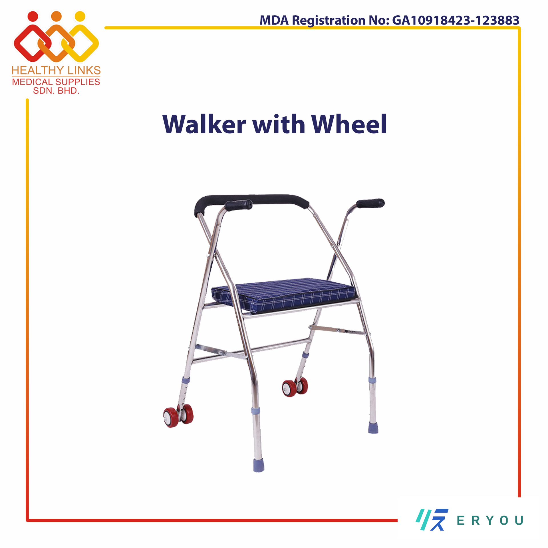 Stainless Steel Foldable Height Adjustable Walker with Wheel and Seat (SYIV-CRS11)